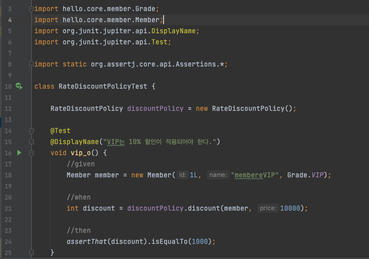 line 24: assertThat 메서드만 호출하면 된다! Assertions 클래스 명시가 사라져서 코드가 한결 깔끔하다.