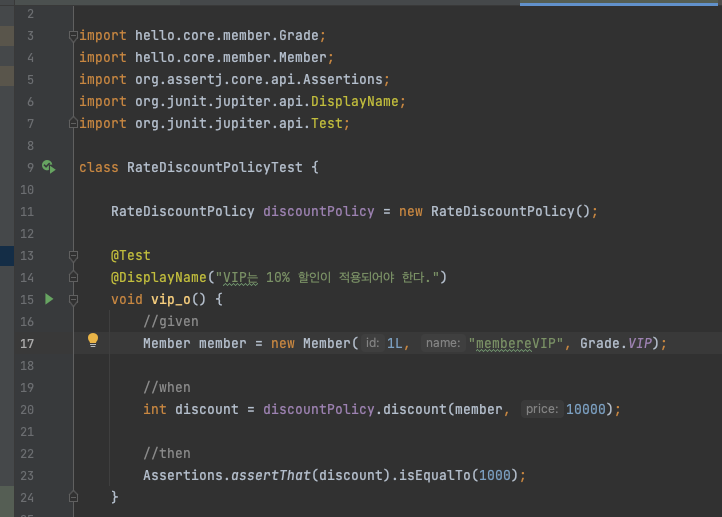 line 24: assertThat 메서드만 호출하면 된다! Assertions 클래스 명시가 사라져서 코드가 한결 깔끔하다.