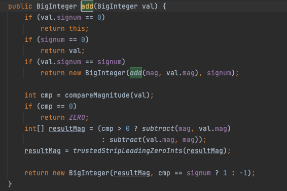 BigDecimal과 BigInteger는 add를 사용하여, 사람들이 종종 함수의 뜻을 착각한다고 합니다.
