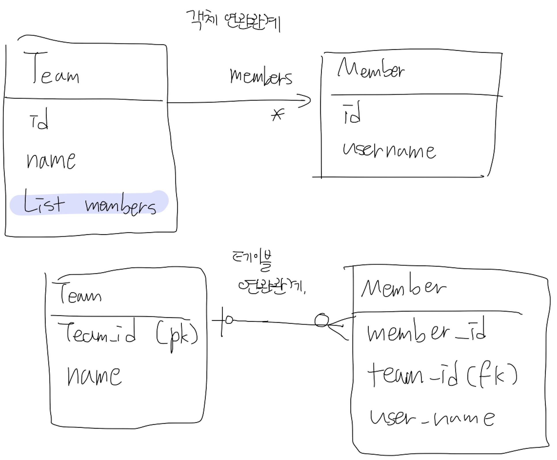 - 연관관계 관리 위해 update 쿼리 추가 실행 (member insert, team insert, member update)