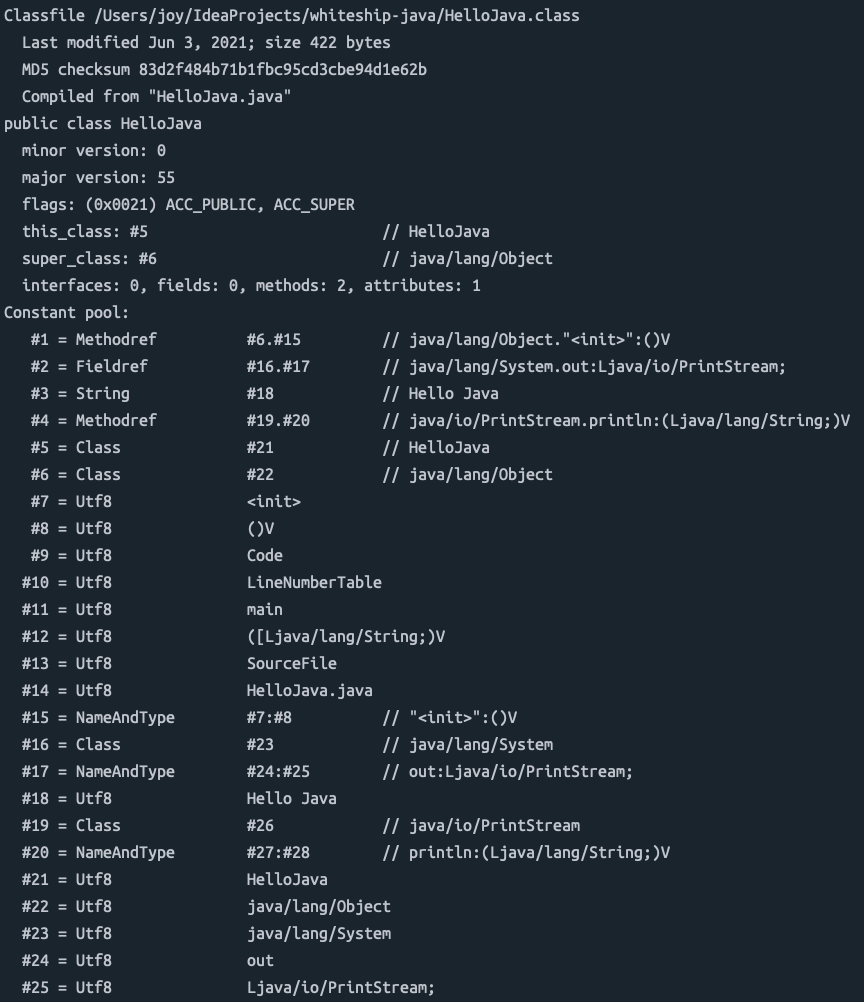 터미널창에서 java (예제파일이름).class 을 입력하면, JVM이 class의 바이트코드를 읽고 실행한다.
