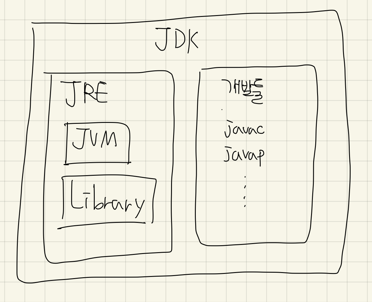 - JRE = JVM + 라이브러리 + 자바 런타임에서 사용되는 리소스,프로퍼티세팅